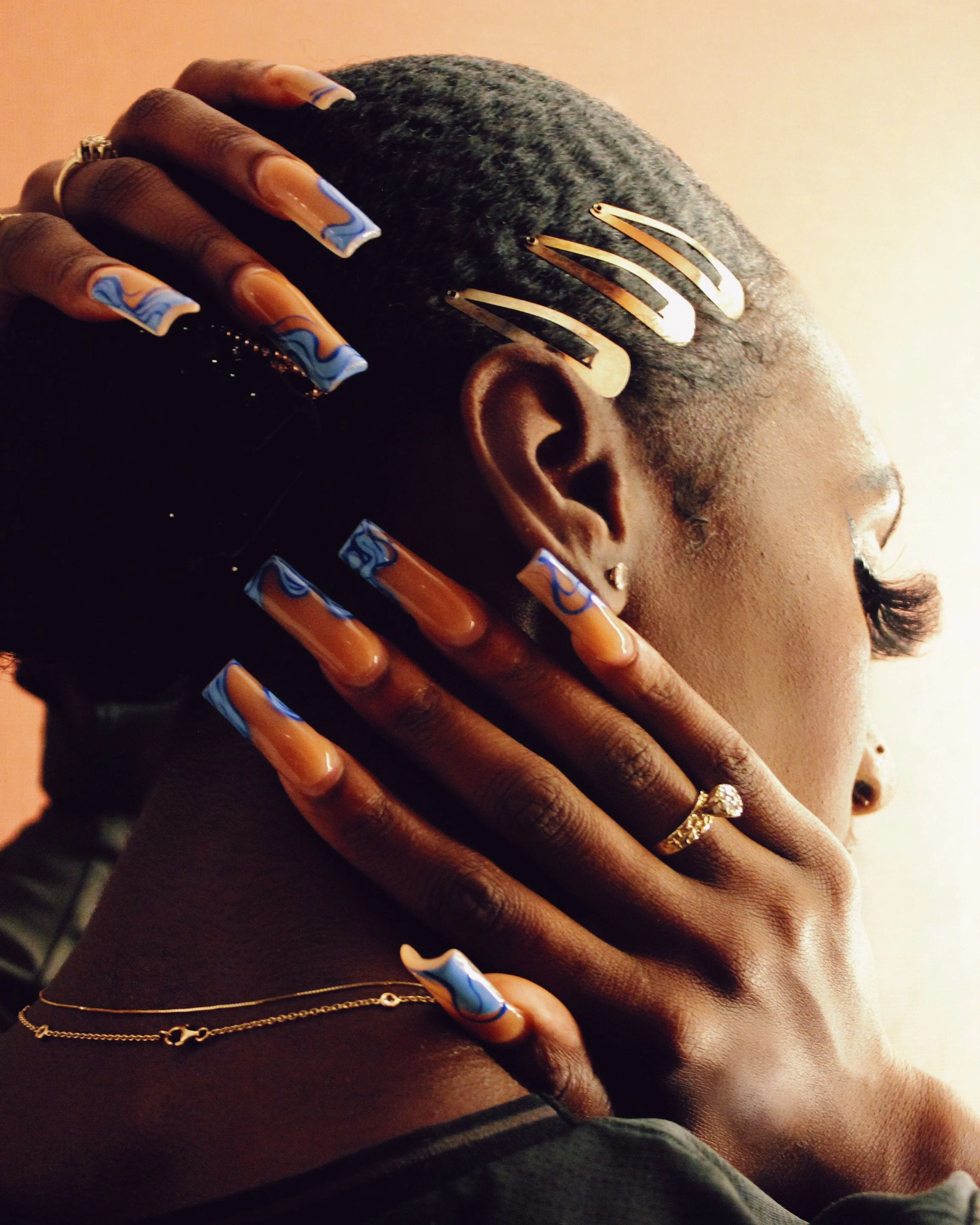 Amber Hughes’ nails caught eyes, making her self-designed nails our favourite set at the NYC Grand Prix.