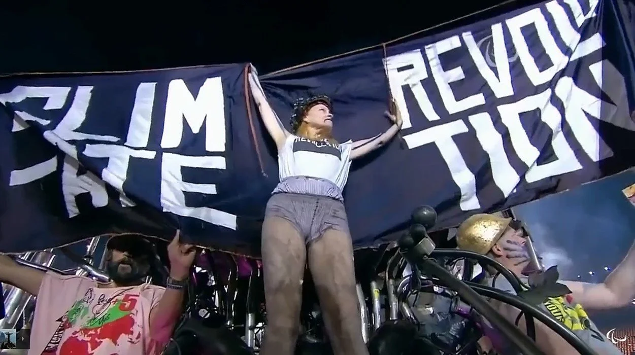 Dame Vivienne Westwood waving the flag of her Climate Revolution at the London 2012 Paralympic Games via youtube.com